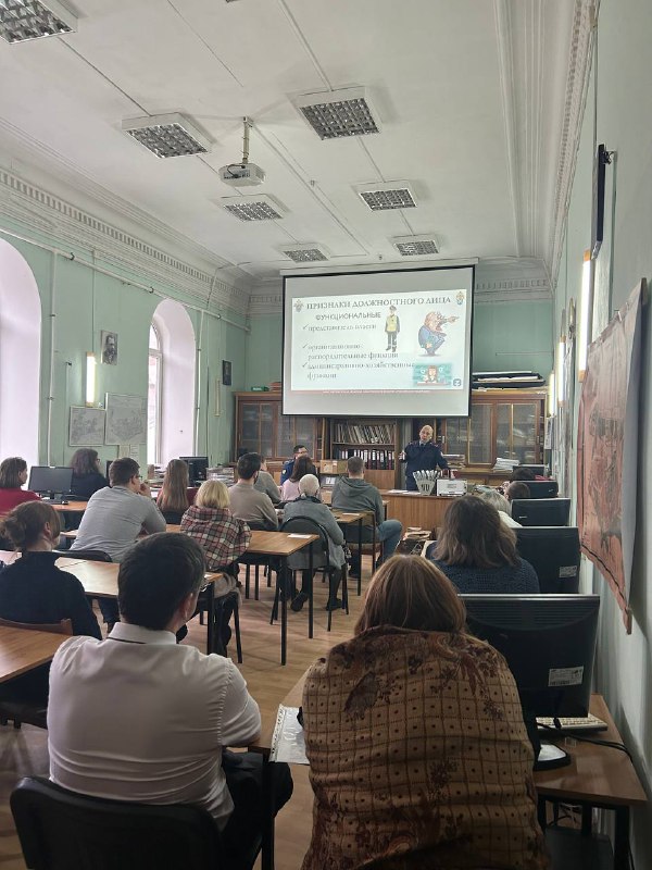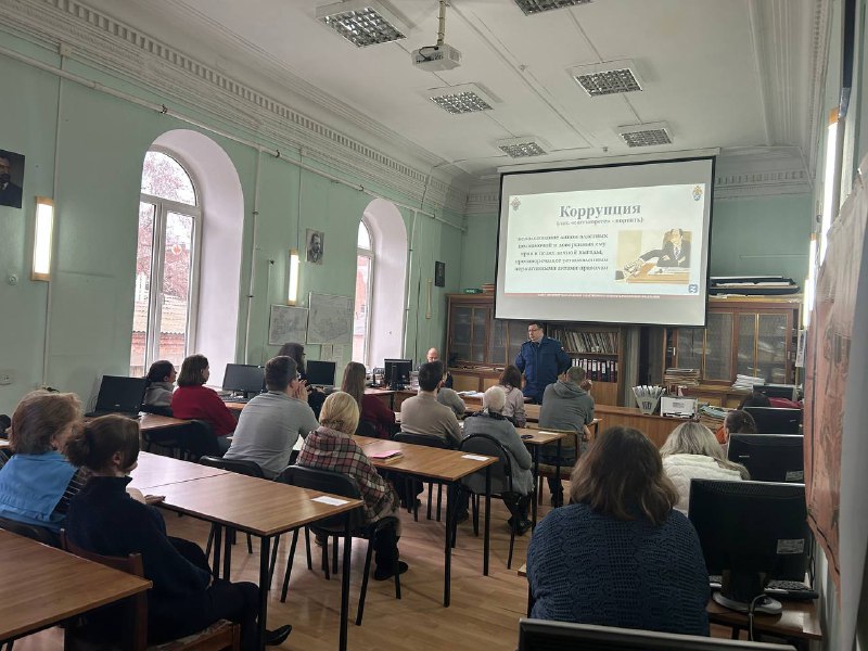 18 декабря 2025 года в рамках мероприятий по профилактике нарушений законодательства о противодействии коррупции в органах исполнительной власти и подведомственных учреждениях старший помощник прокурора Кировского района Ростова-на-Дону Иван Пахайло и кандидат юридических наук, доцент кафедры уголовного права и криминологии Ростовского филиала Санкт-Петербургской академии Следственного комитета, доцент кафедры уголовно-правовых дисциплин Ростовского филиала Российской таможенной академии Вячеслав Лавринов рассказали сотрудникам Государственного архива Ростовской области о важности соблюдения законодательства в области противодействия коррупции, разъяснили понятия «подарок» и «взятка» и статьи Уголовного кодекса Российской Федерации, в соответствии с которыми наступает ответственность за коррупционные действия.