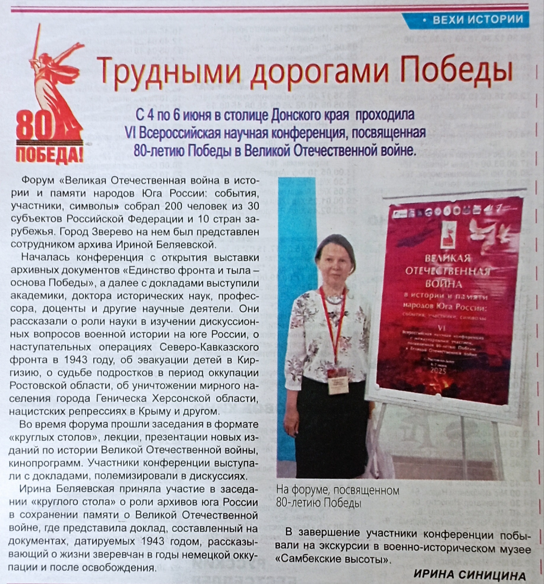 В общественно-политической газете города Зверево "Наша газета" № 25 от 18 июня 2025 года опубликована статья сотрудником архивного сектора Администрации города Зверево «Трудными дорогами Победы».