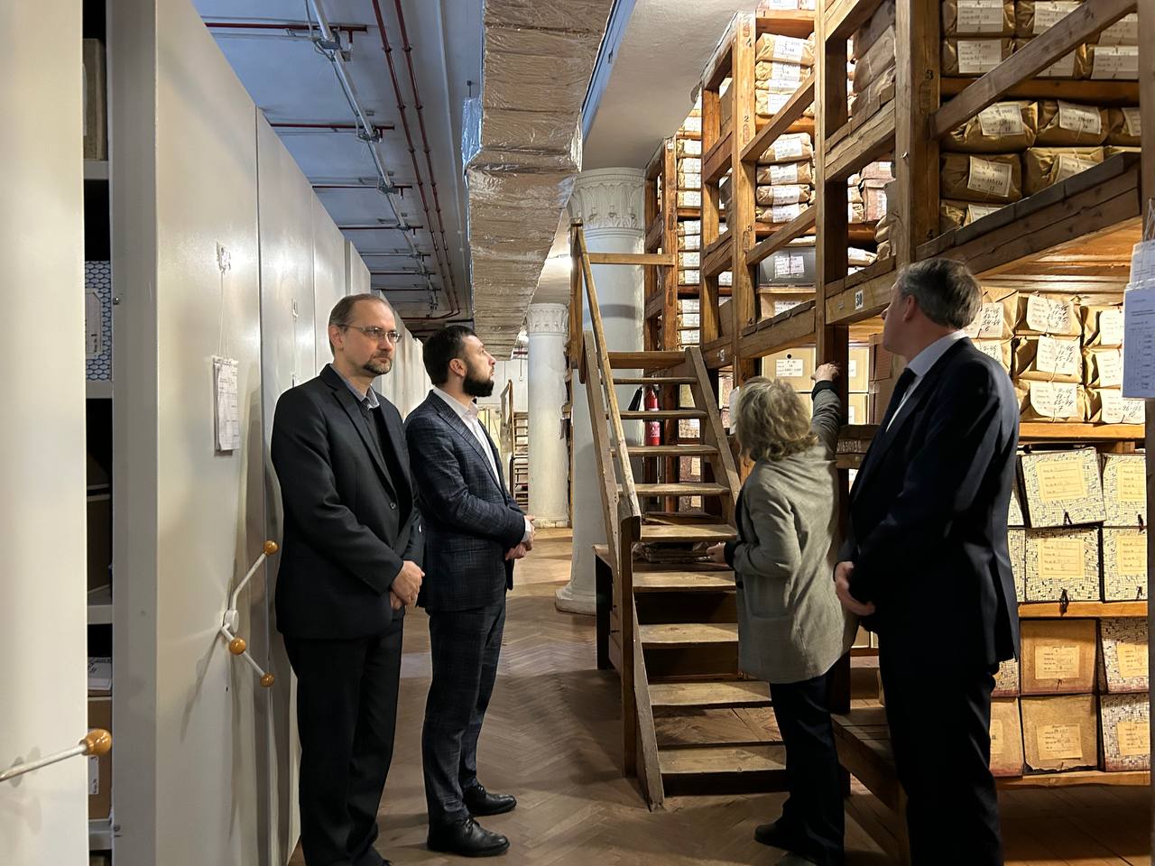 В ходе визита директор ГАРО Евгений Шандулин и заведующие отделами Зоя Чумакова и Виктория Слышанкова провели для гостя экскурсию по архивохранилищам, в том числе познакомили с работой фотокаталога. Были представлены особенности хранения документов, состав и содержание архивных фондов, методика генеалогических поисков, а также вопросы оцифровки дел и цифровизации архивного дела в целом. На встрече присутствовал заместитель председателя комитета по управлению архивным делом Сергей Володьков.