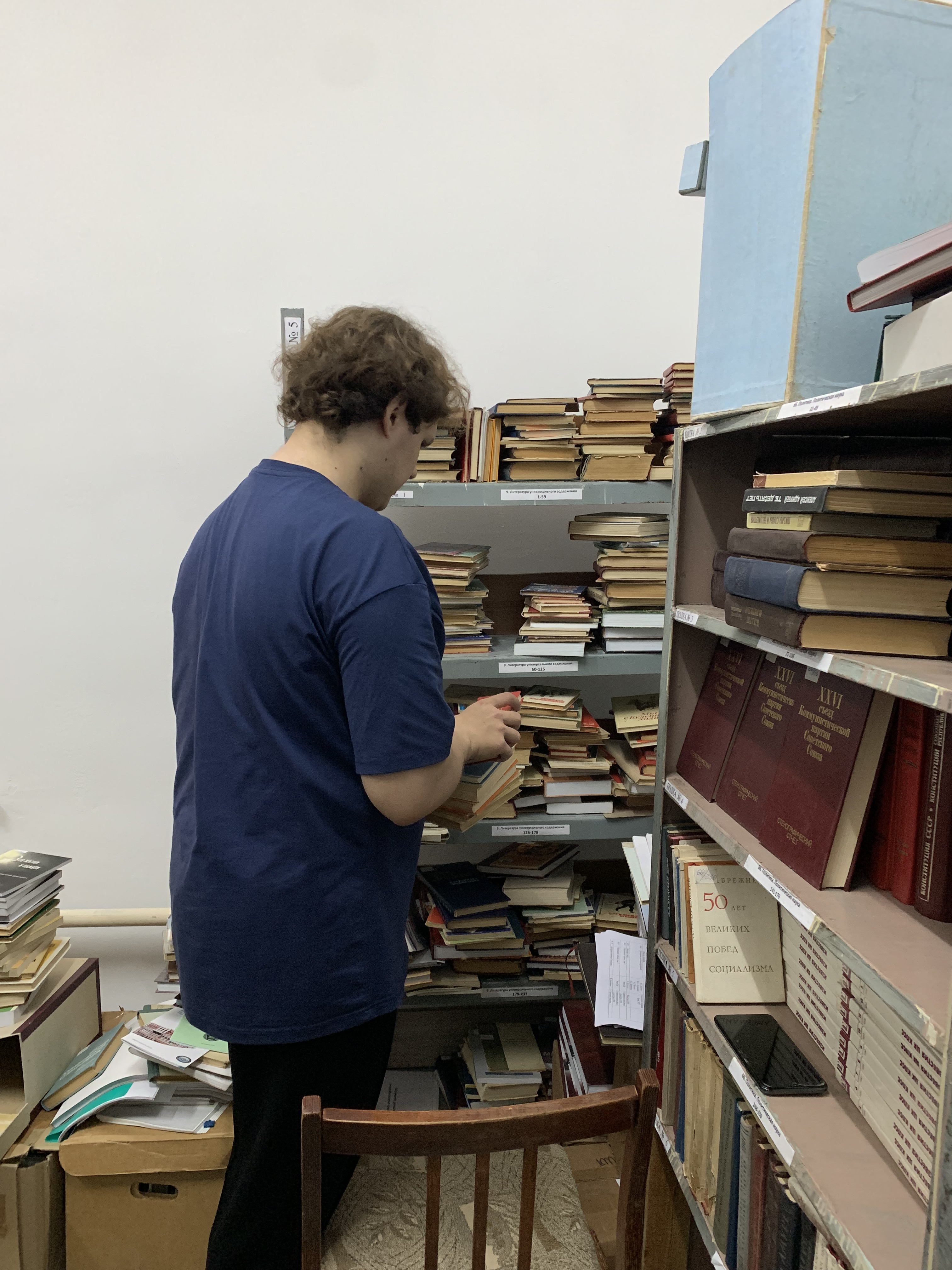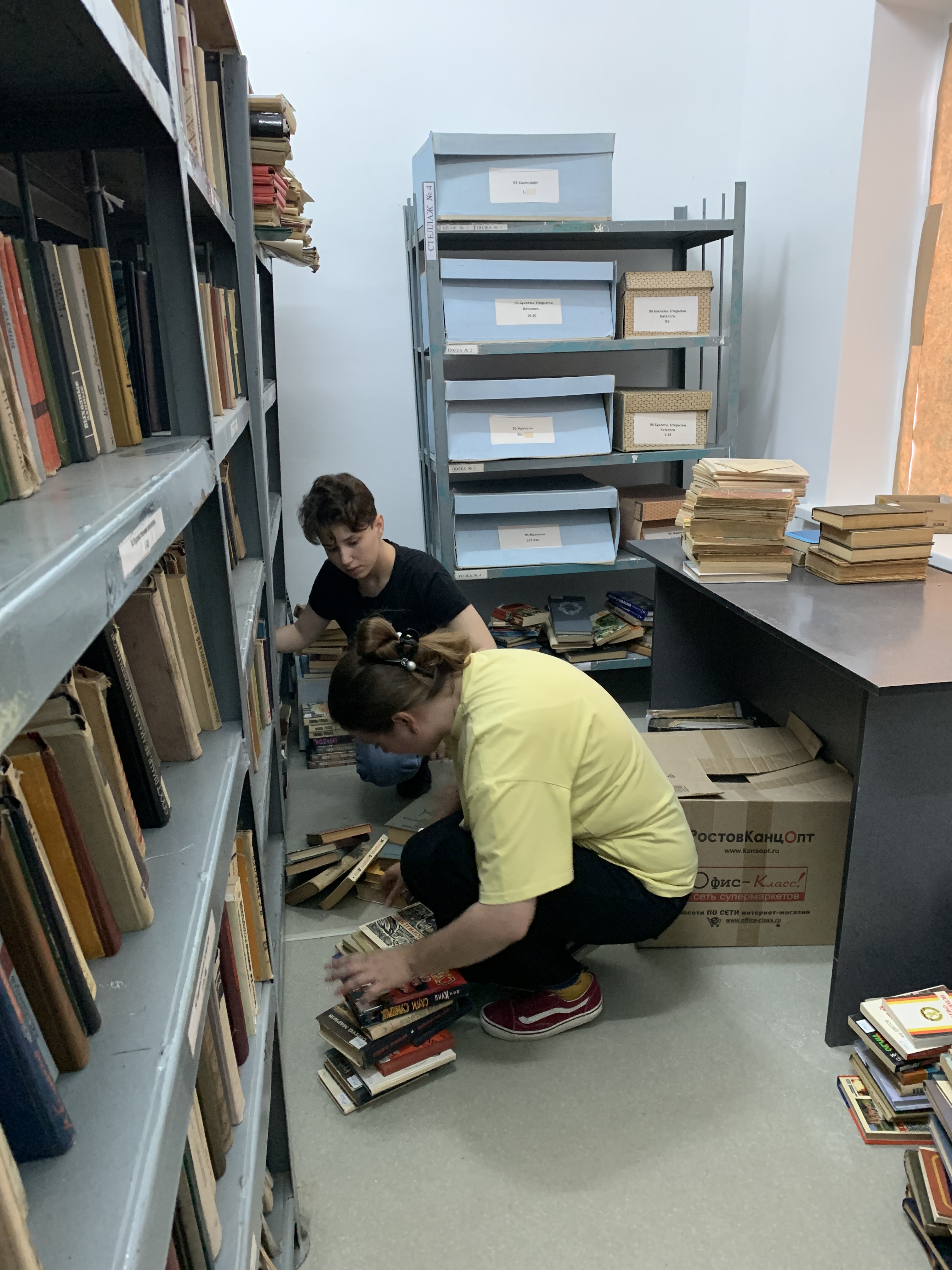 Первые дни практики ребята занимались разбором и размещением научно-справочной библиотеки после проведения в архиве капитального ремонта.