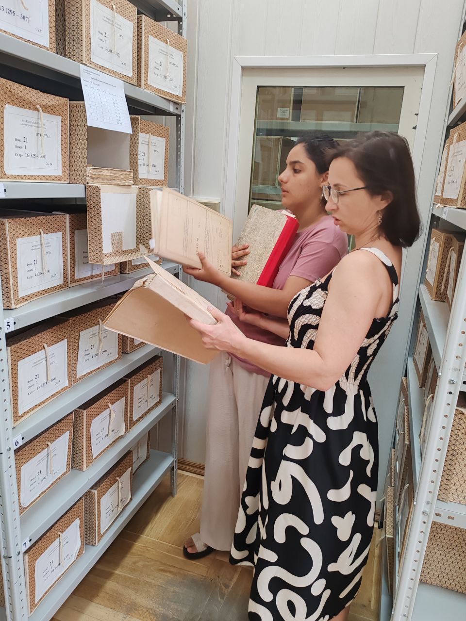 В рамках ознакомительного блока практиканты посетили архивохранилище, где познакомились с составом документов, находящихся на постоянном хранении и условиями их хранения.
