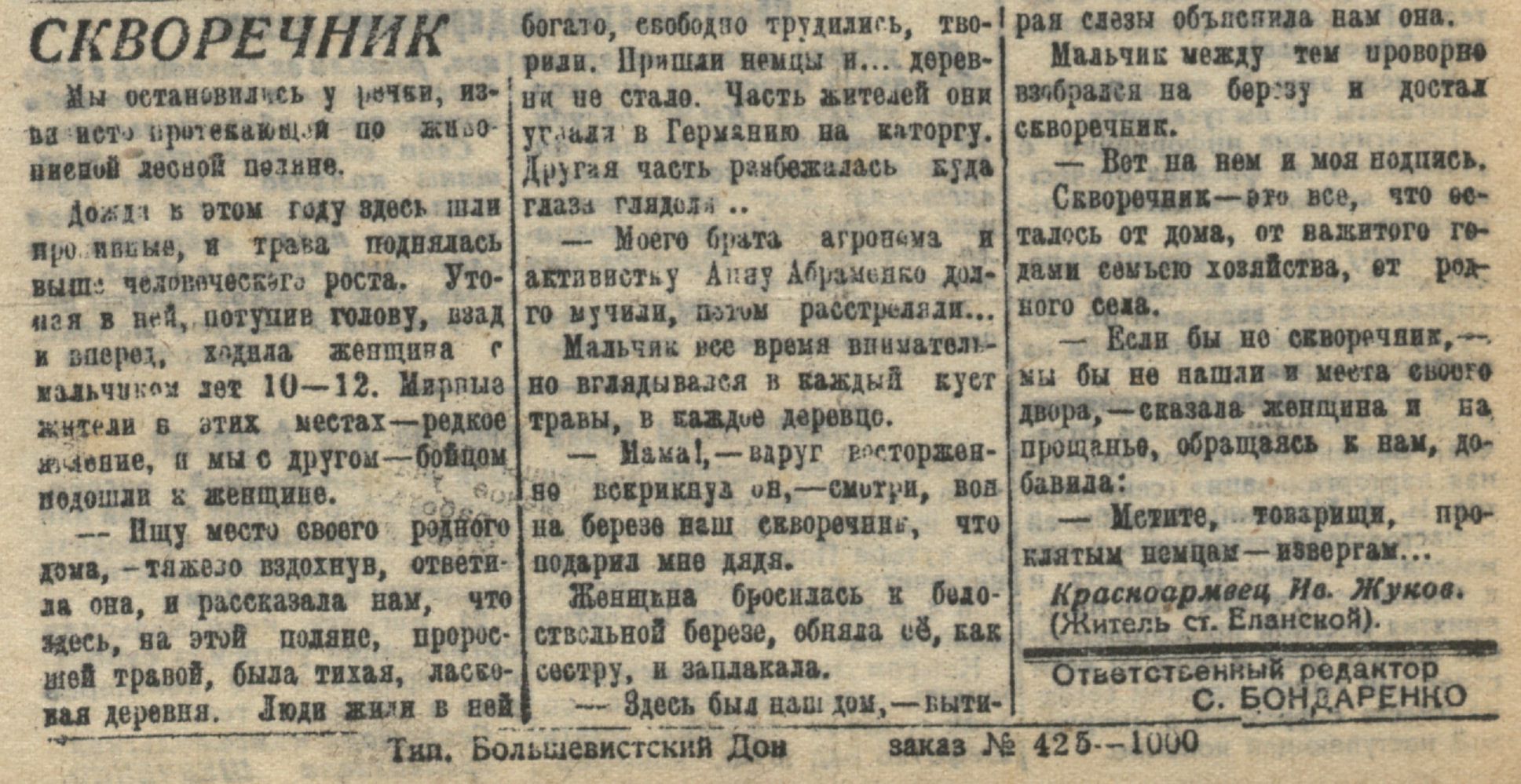 Большевистский Дон (Вешенский район). 1943. 28 августа. № 102. С. 2.