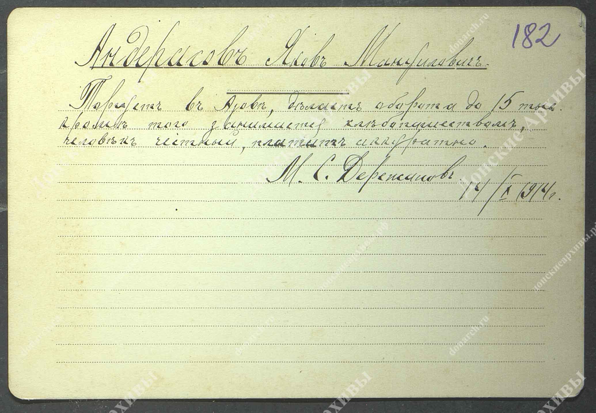 Личная карточка Андерасова Якова Мануиловича, торговца в Азове |