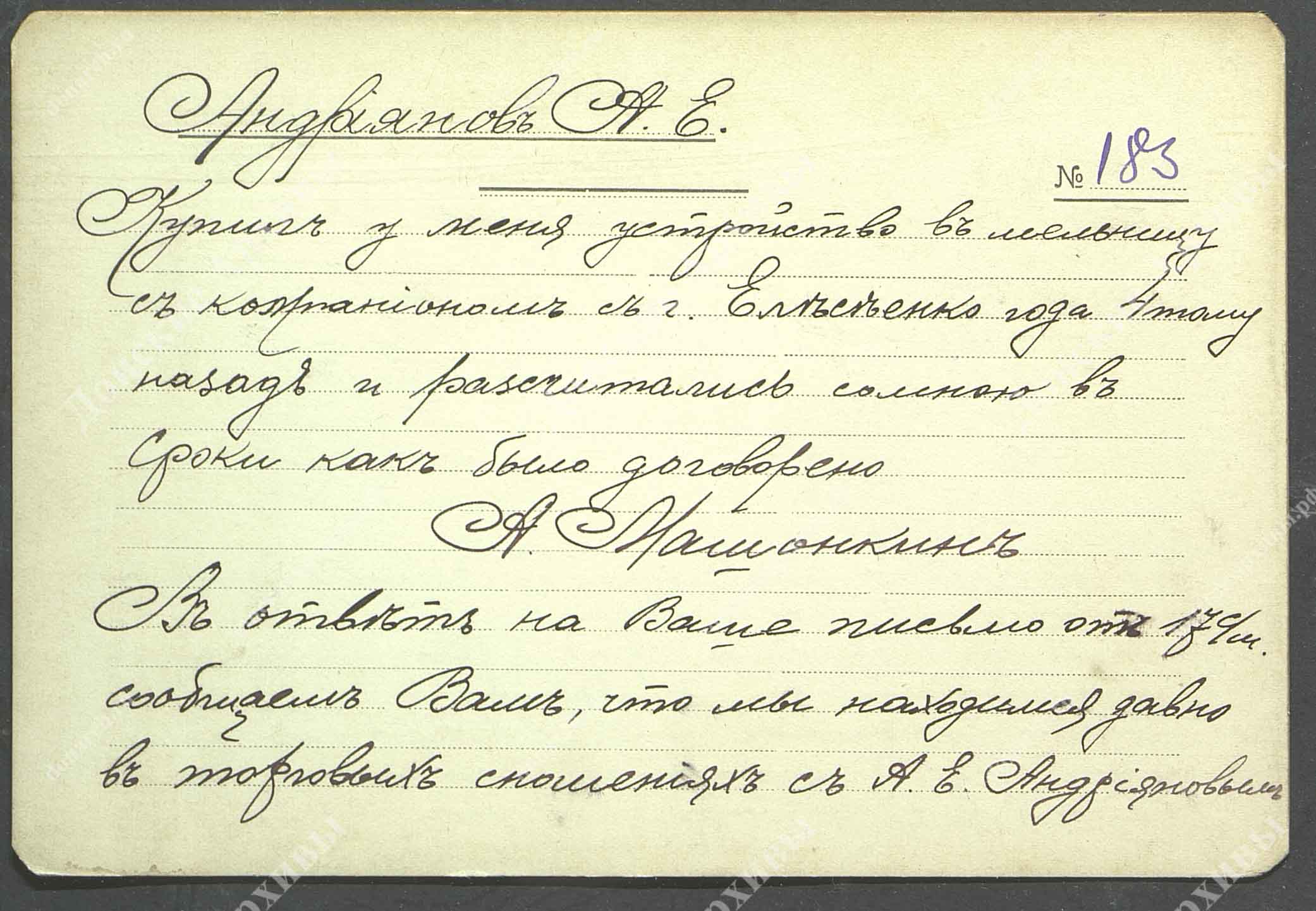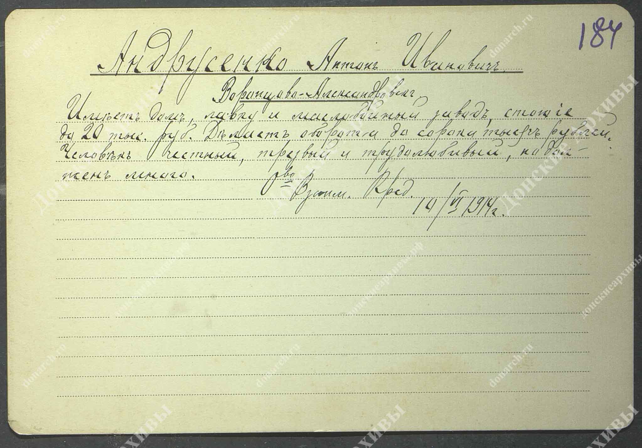Личная карточка Андрусенко Антона Ивановича, владельца дома, лавки и маслобойного завода (Воронцово-Александровск) |