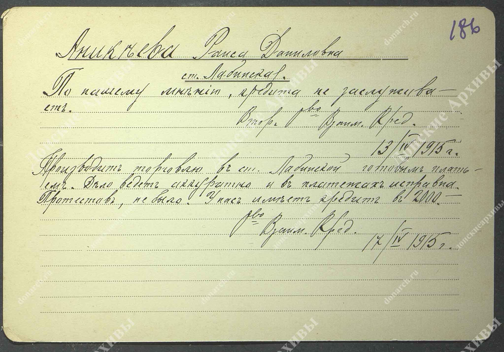 Личная карточка Аникеевой Раисы Даниловны - торговля готовым платьем в ст.Лабинской |