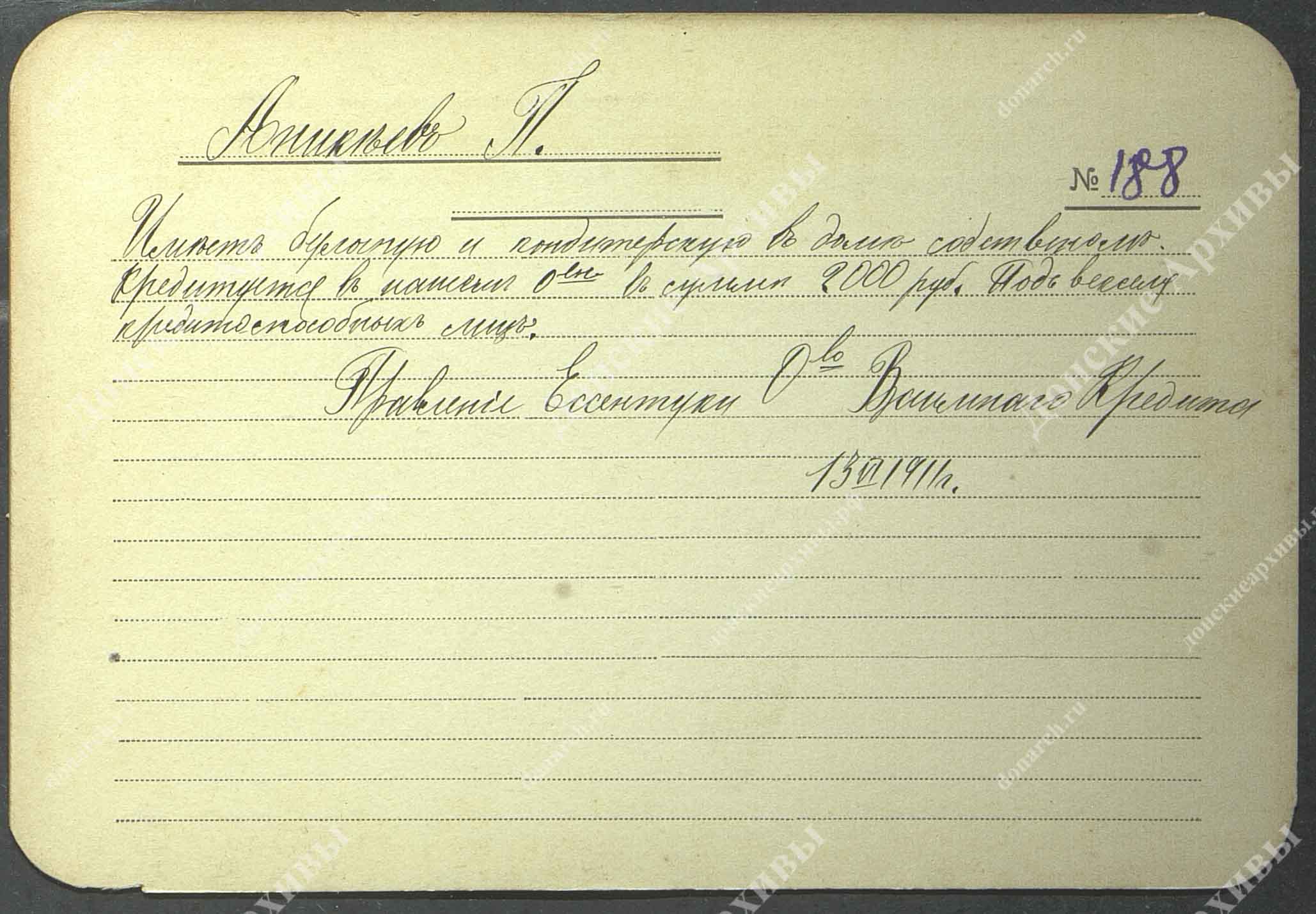 Личная карточка Аникеева П., владельца булочной и кондитерской |