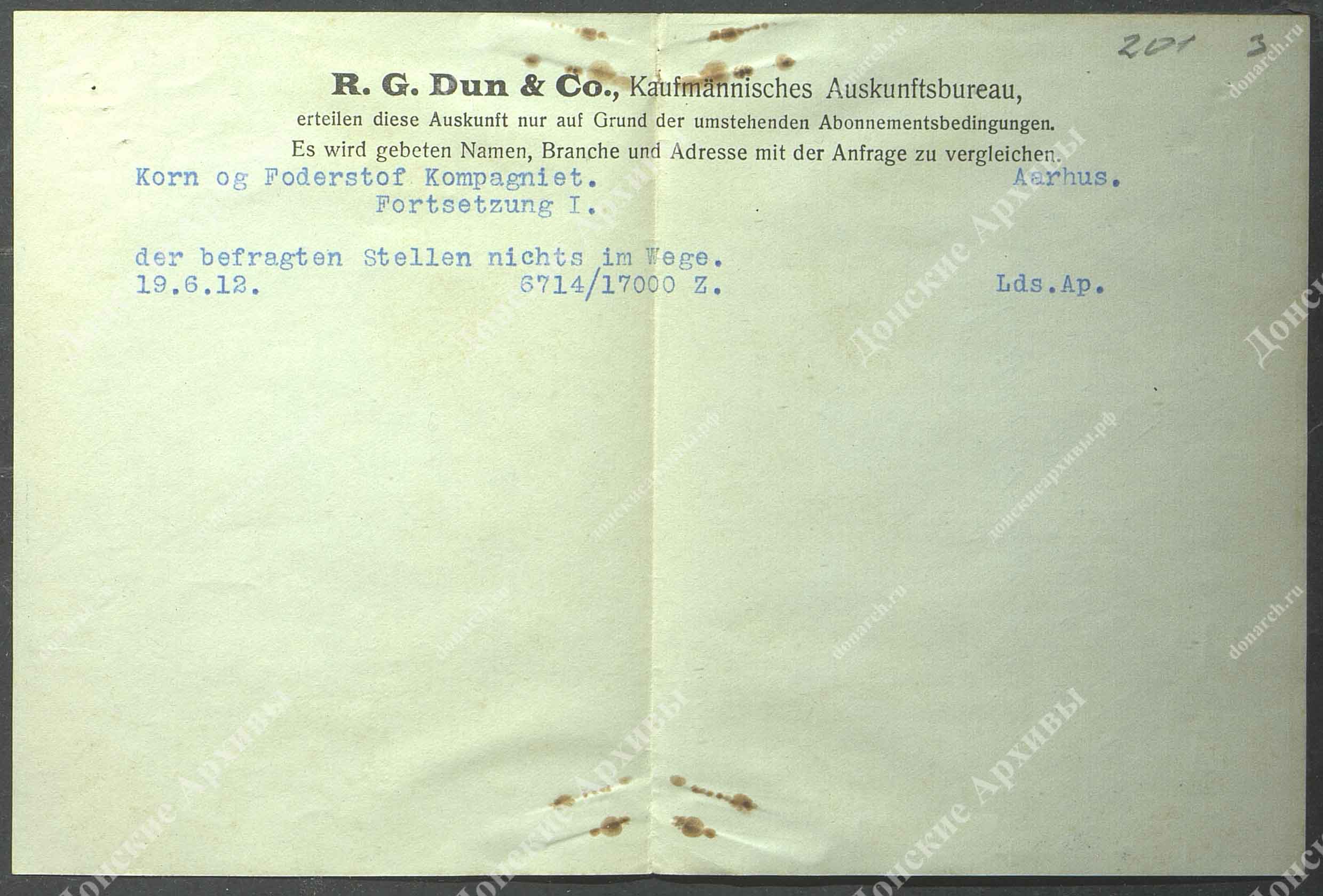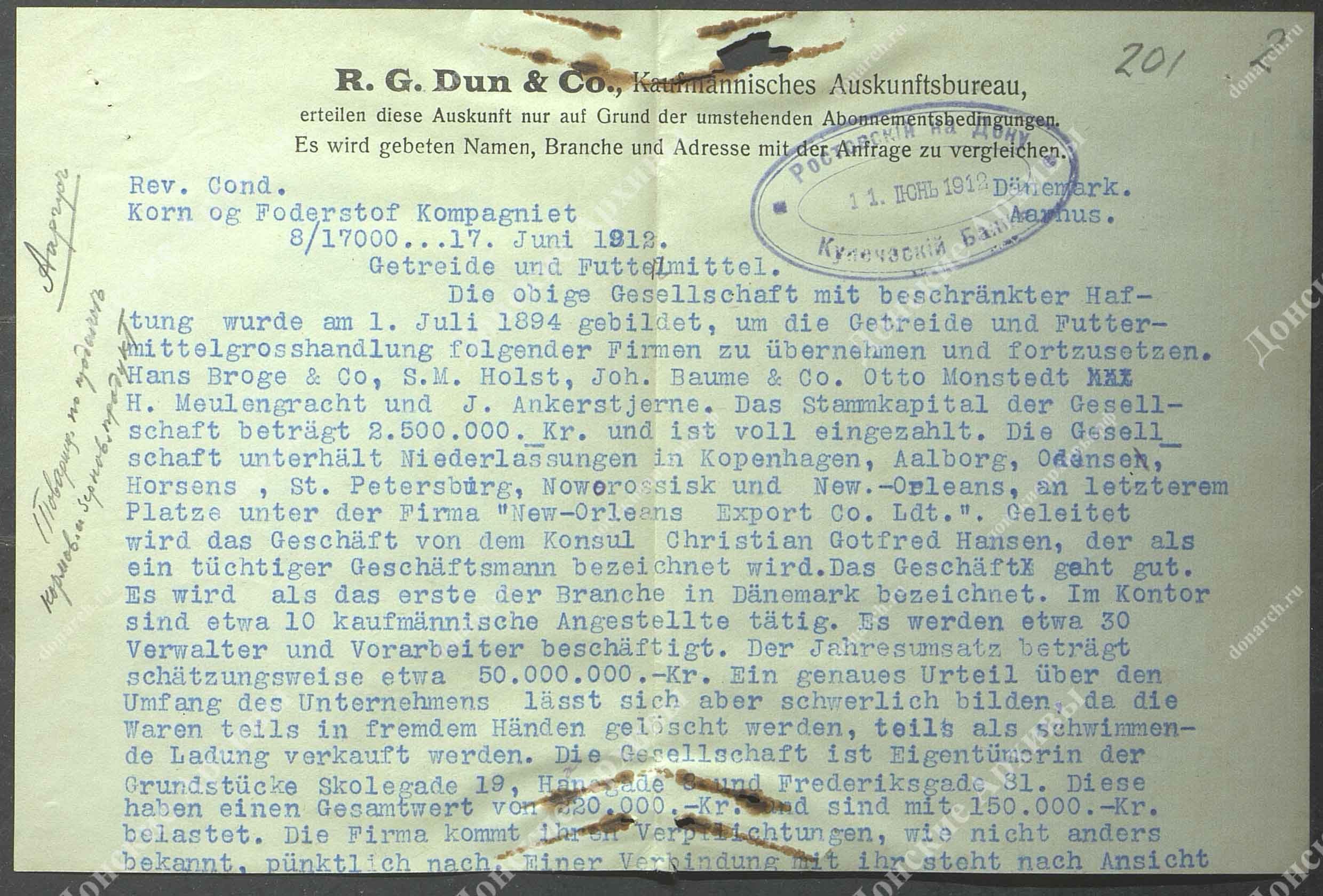 Личная карточка товарищества "Ааргус" - продажа кормов и зерновых продуктов (документы на немецком языке) |