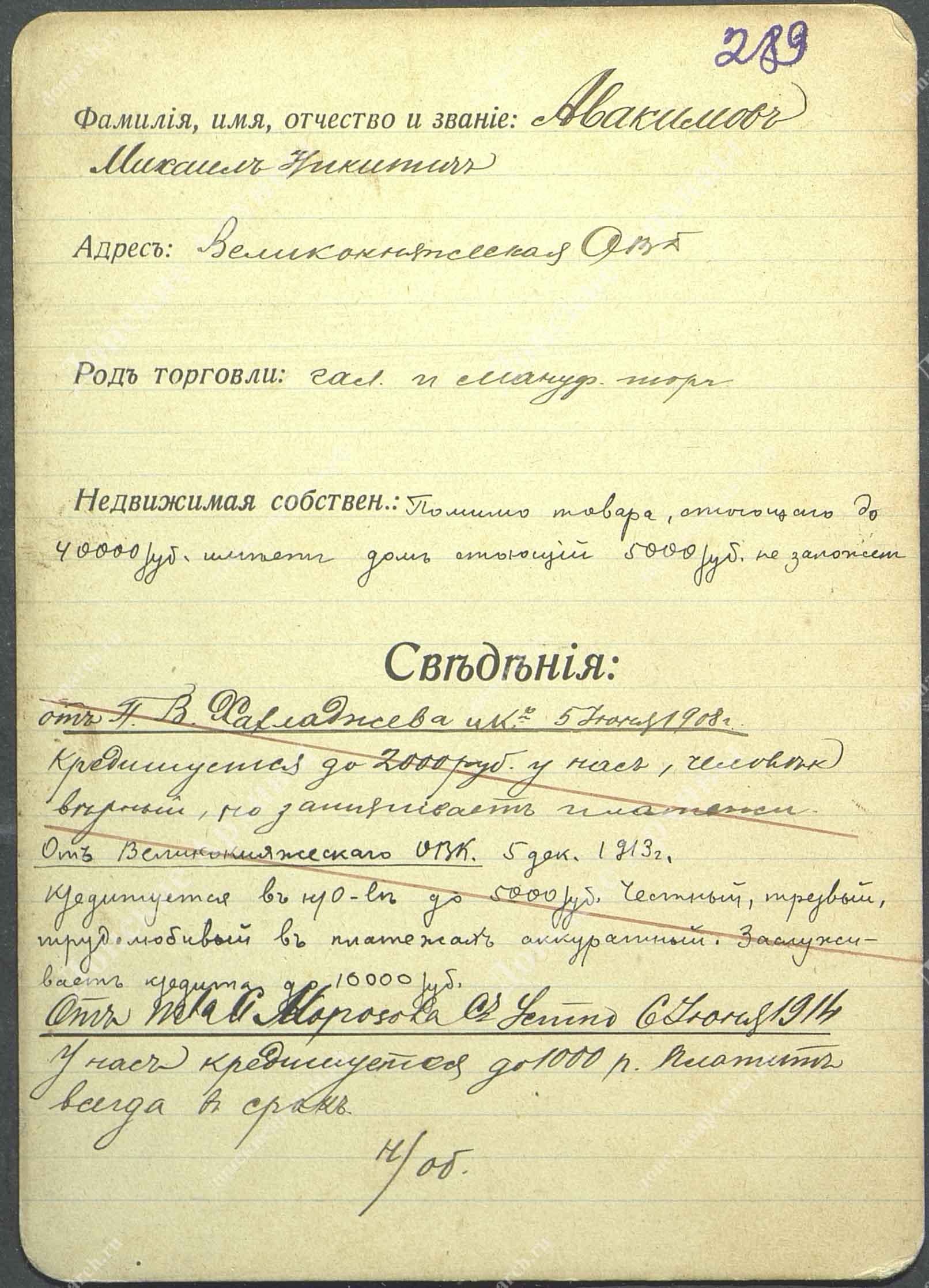 Личная карточка Абрамова Алексея Ивановича - оптово-розничный, модно-мануфактурный и мебельный магазин в ст. Каменской |