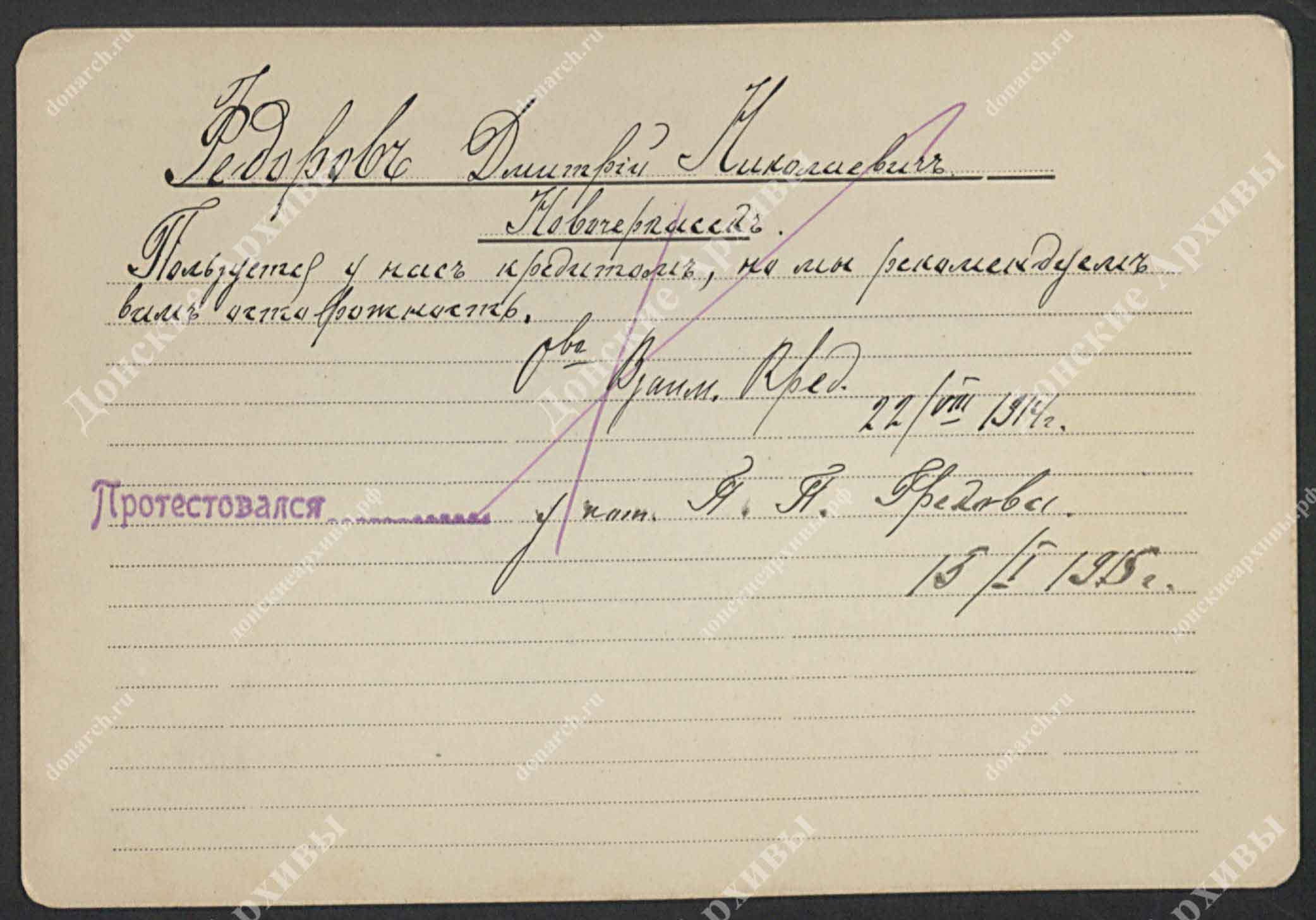 Личная карточка Богер Табиас Христофорович - поселянин, владелец участка земли при деревне Григорьевка и при балке Водяной и Комышеватой Ростовского Округа. |