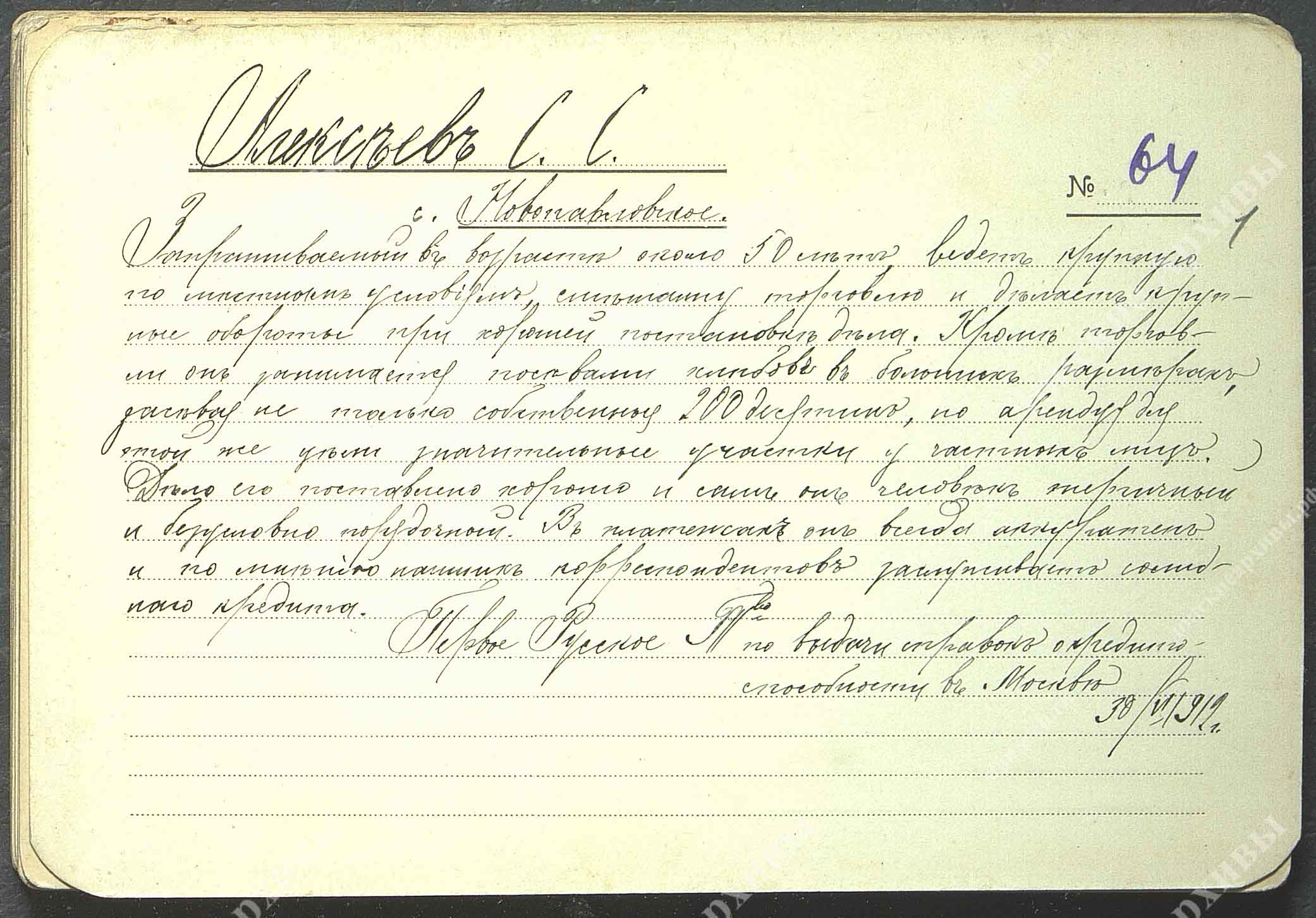 Личная карточка Алексеева С.С., крупного торговца в Новопавловском |