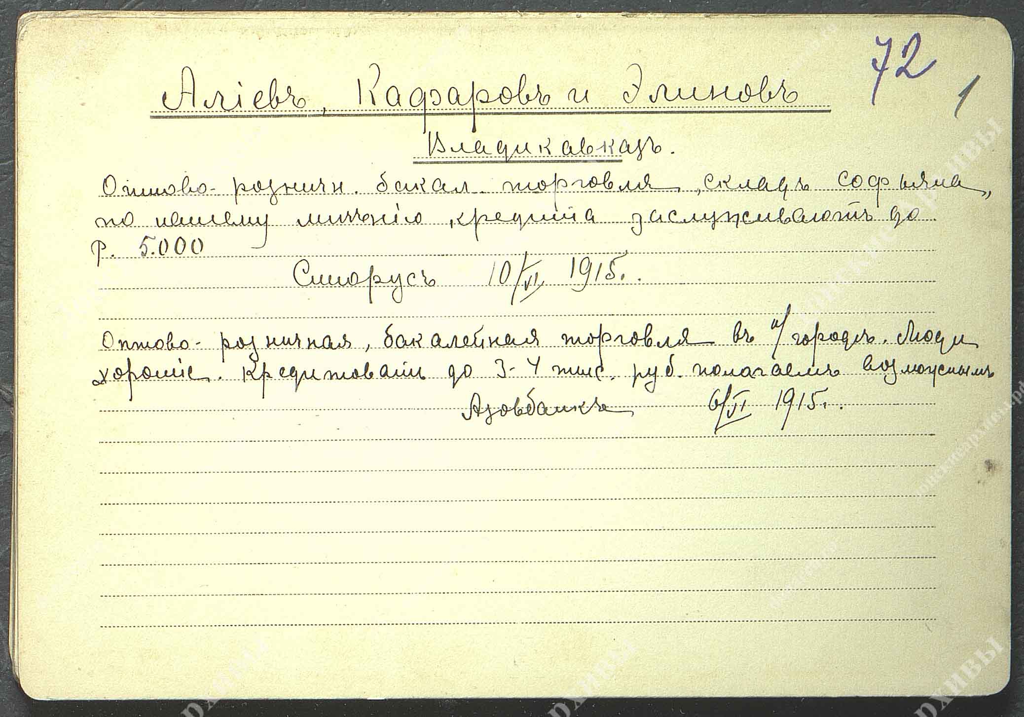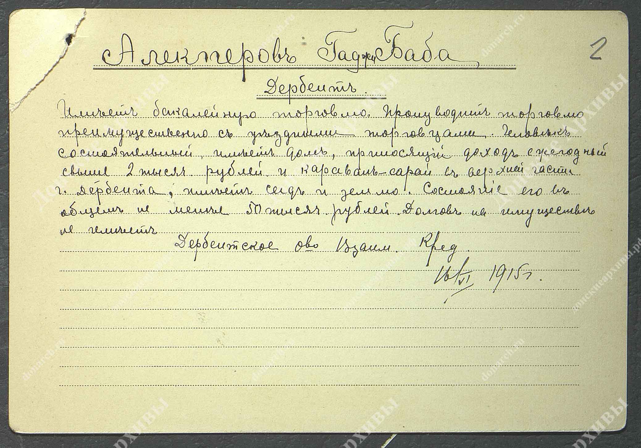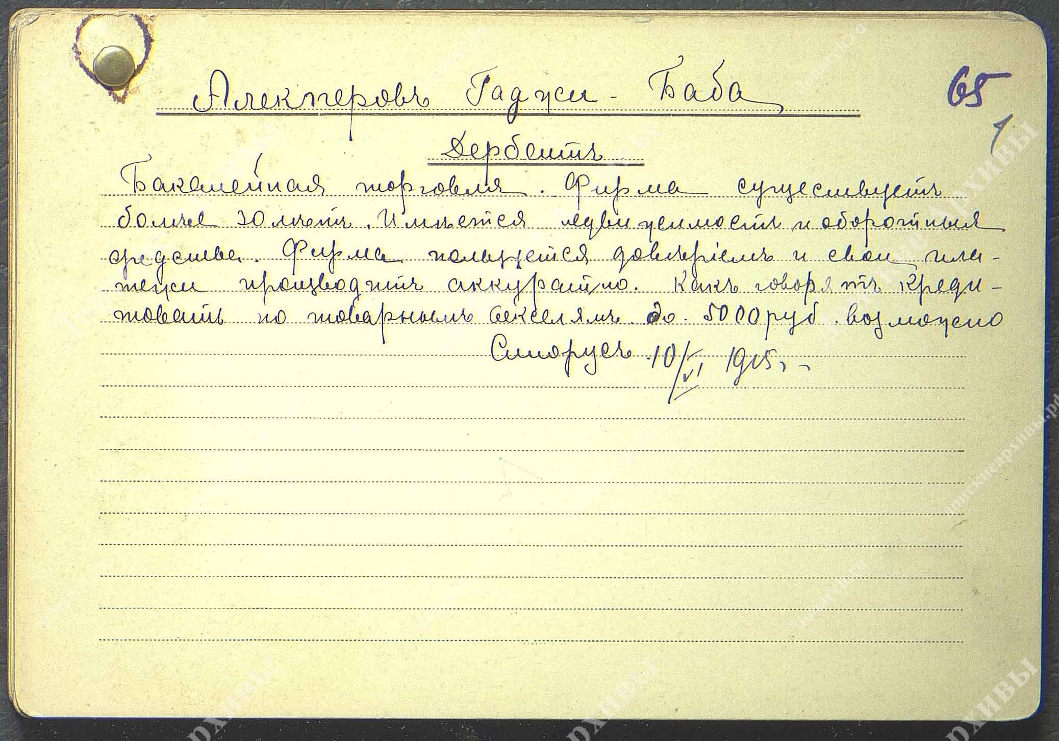 Личная карточка Алекперова Гаджи-Баба - бакалейная торговля в Дербенте |