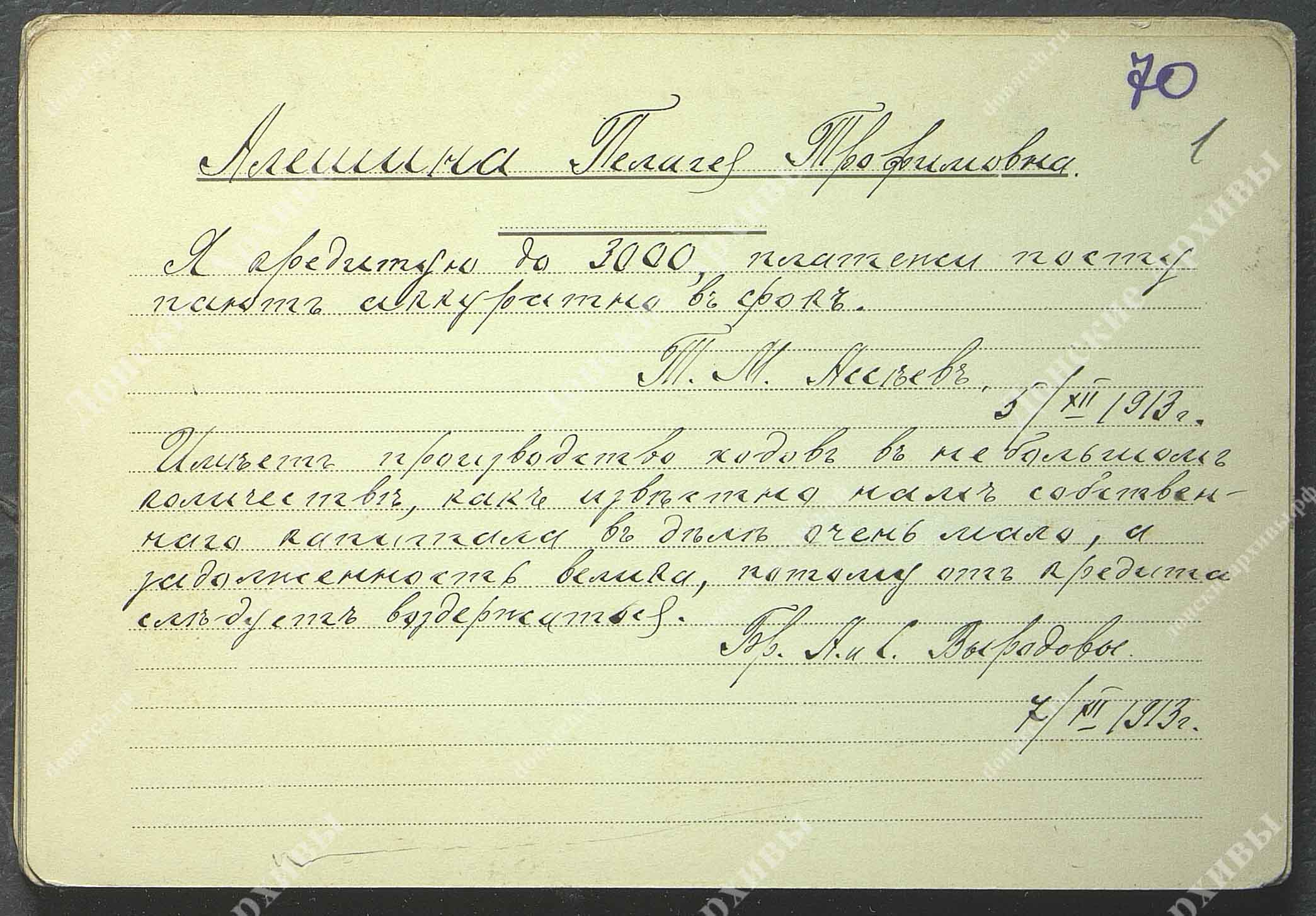 Личная карточка Алешиной Пелагеи Трофимовны |