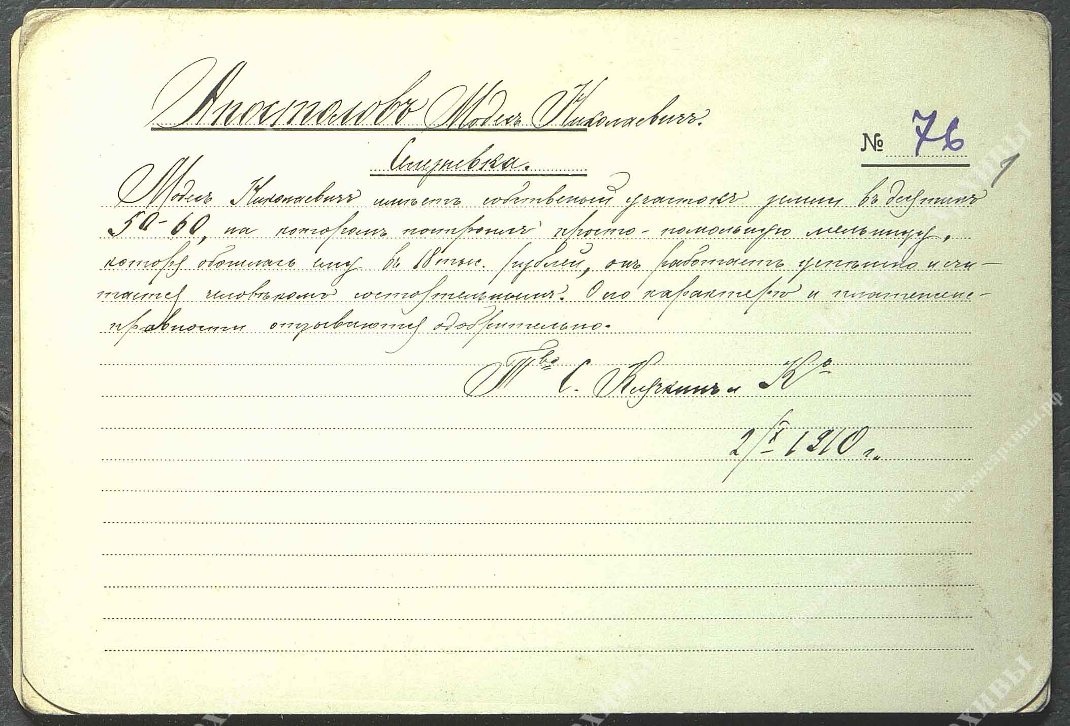 Личная карточка Апостолова Модеса Николаевича, владельца мельницы в Селезневке |