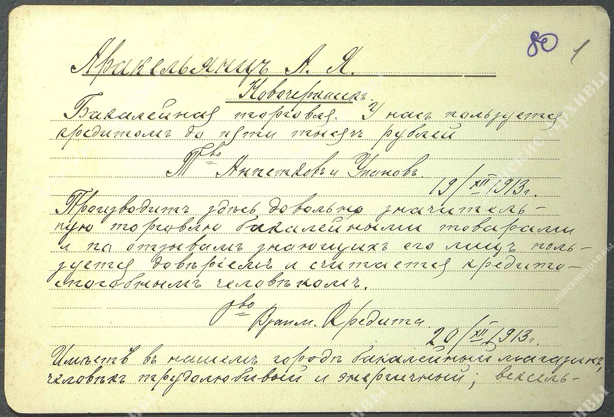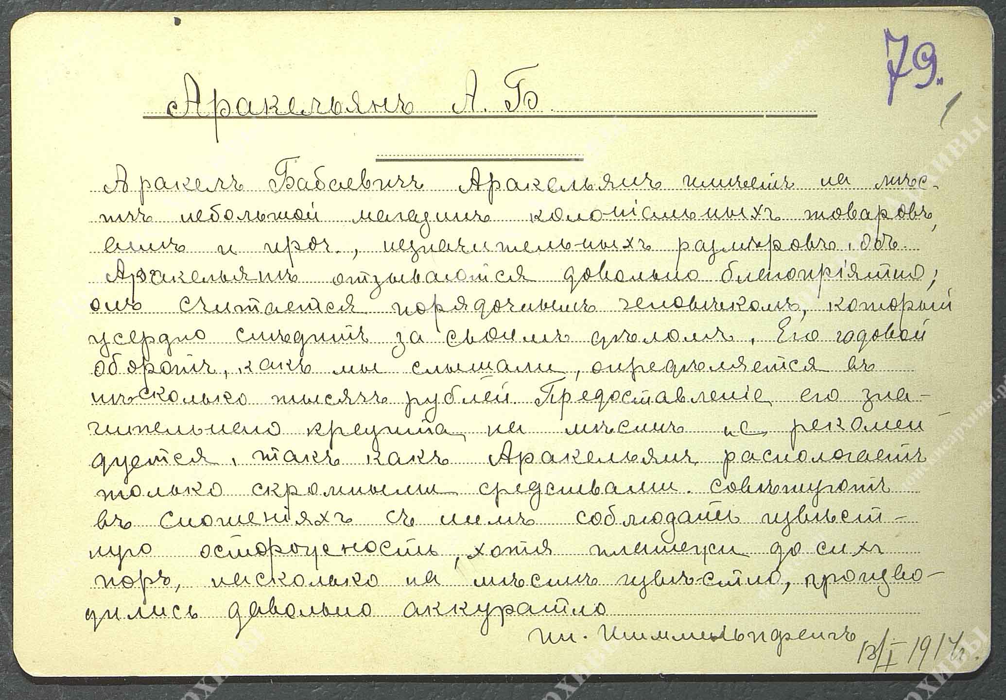 Личная карточка Аракельянова Аракела Бабаевича, владельца магазина колониальных товаров |